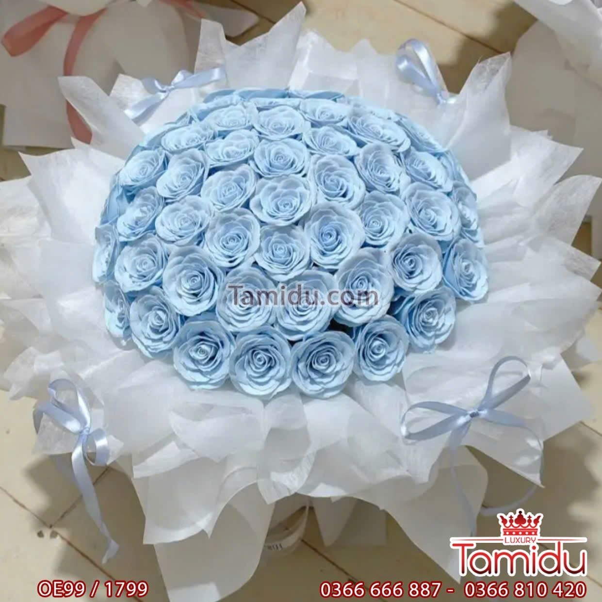 bó 99 bông hồng sáp cánh xoăn cao cấp gói giấy phồng xòe công chúa