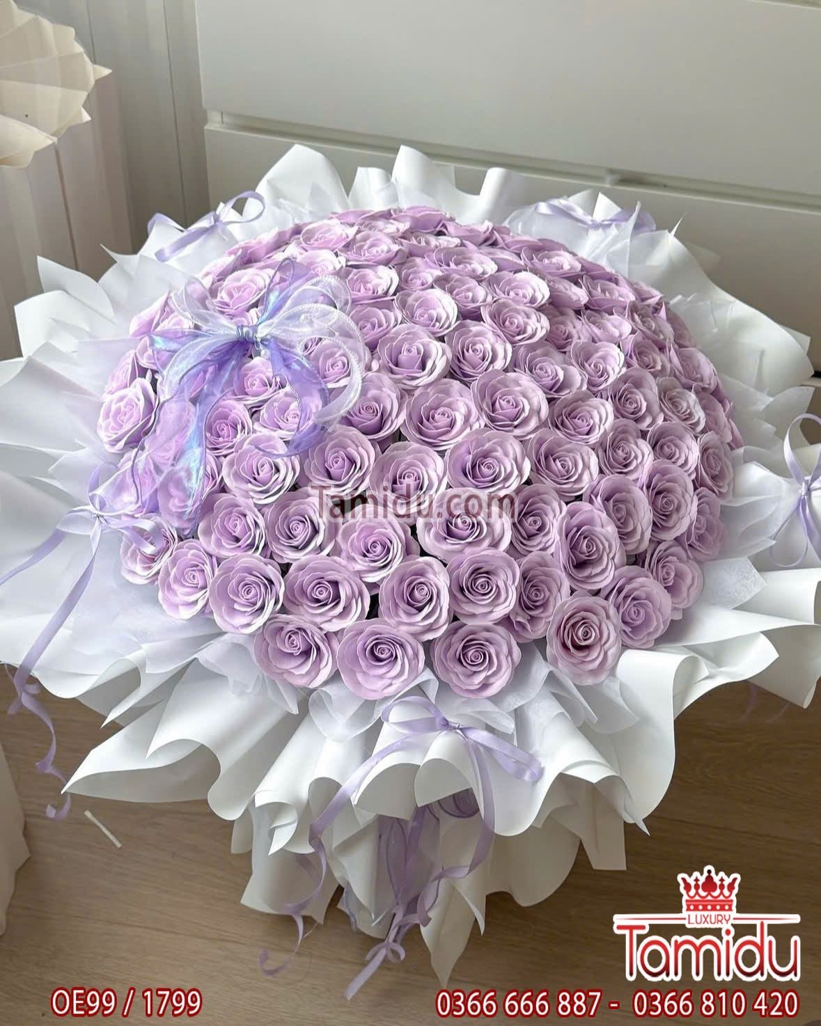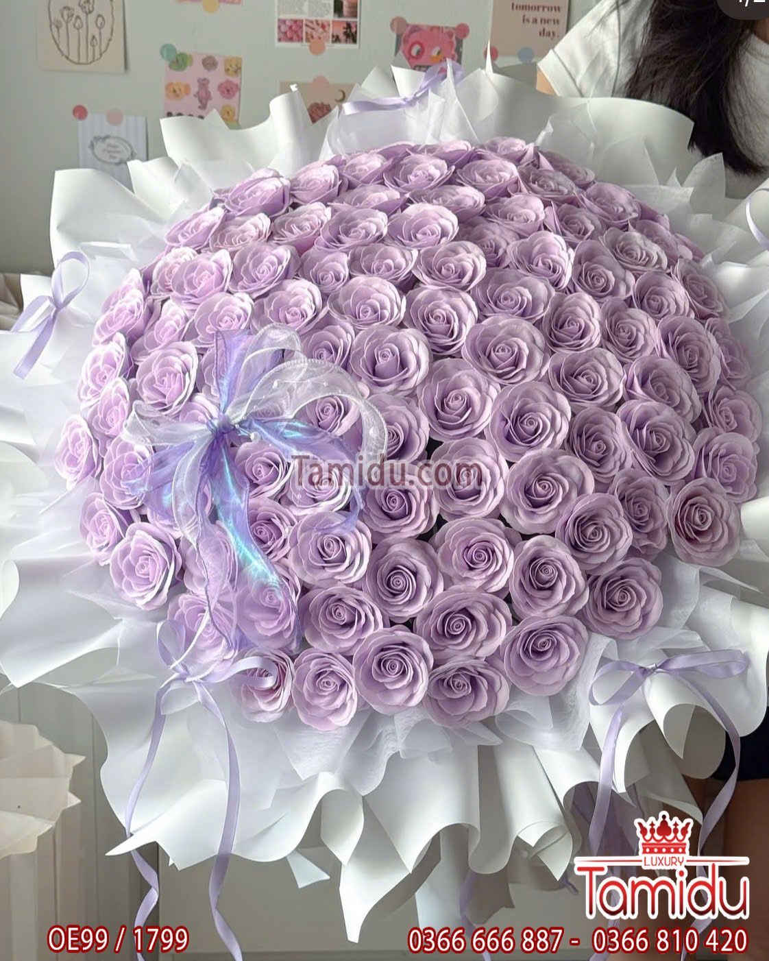 bó 99 bông hồng sáp cánh xoăn cao cấp gói giấy phồng xòe công chúa