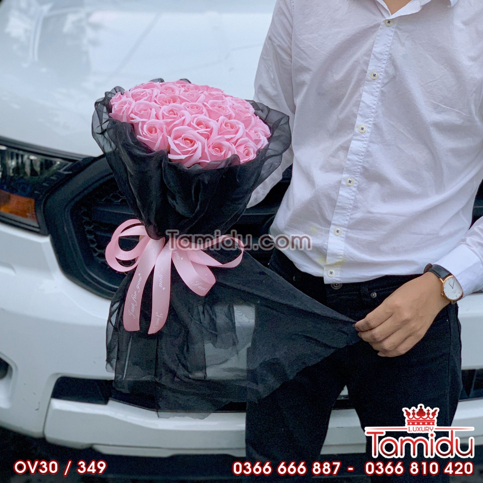 BÓ HOA HỒNG SÁP THƠM VĨNH CỬU TRÒN 30 BÔNG MÀU HỒNG CAO CẤP BỌC VOAN - MÓN QUÀ Ý NGHĨA CHO PHÁI ĐẸP MÊ SẮC HỒNG