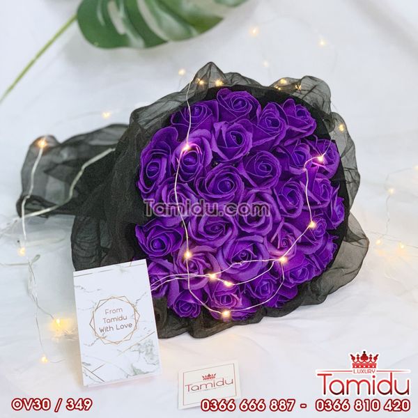 BÓ HOA HỒNG SÁP THƠM VĨNH CỬU TRÒN 30 BÔNG MÀU TÍM CAO CẤP BỌC VOAN - QUÀ TẶNG 20 THÁNG 10 BÁN CHẠY NHẤT