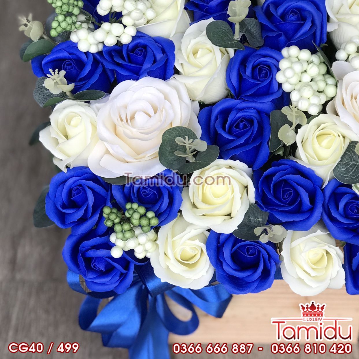Chậu Gỗ Hoa Hồng Sáp Thơm Cao Cấp Màu Xanh Coban