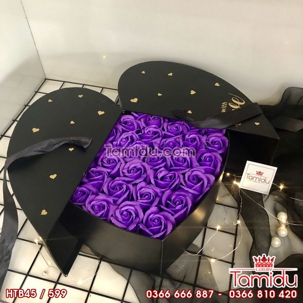 Hộp Hoa Sáp Trái Tim Nắp Cánh Bướm Cao Cấp