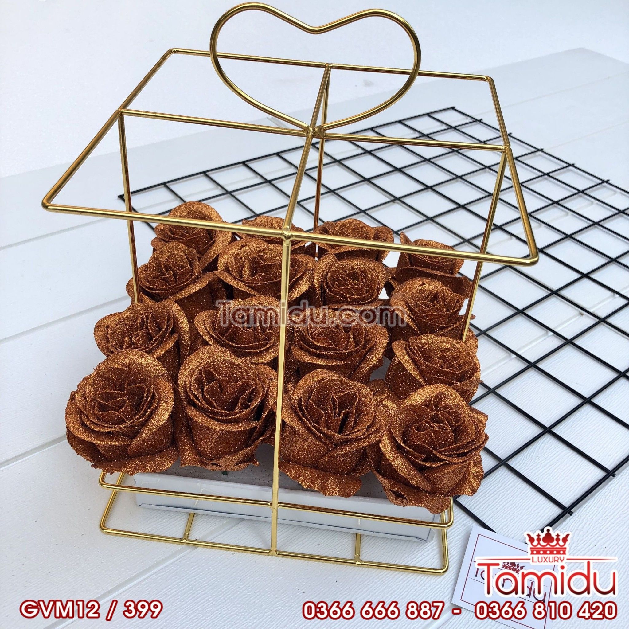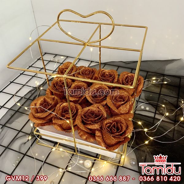 Giỏ Vuông Mạ Vàng Kim Tuyến 12 Bông Siêu Cấp Màu Vàng