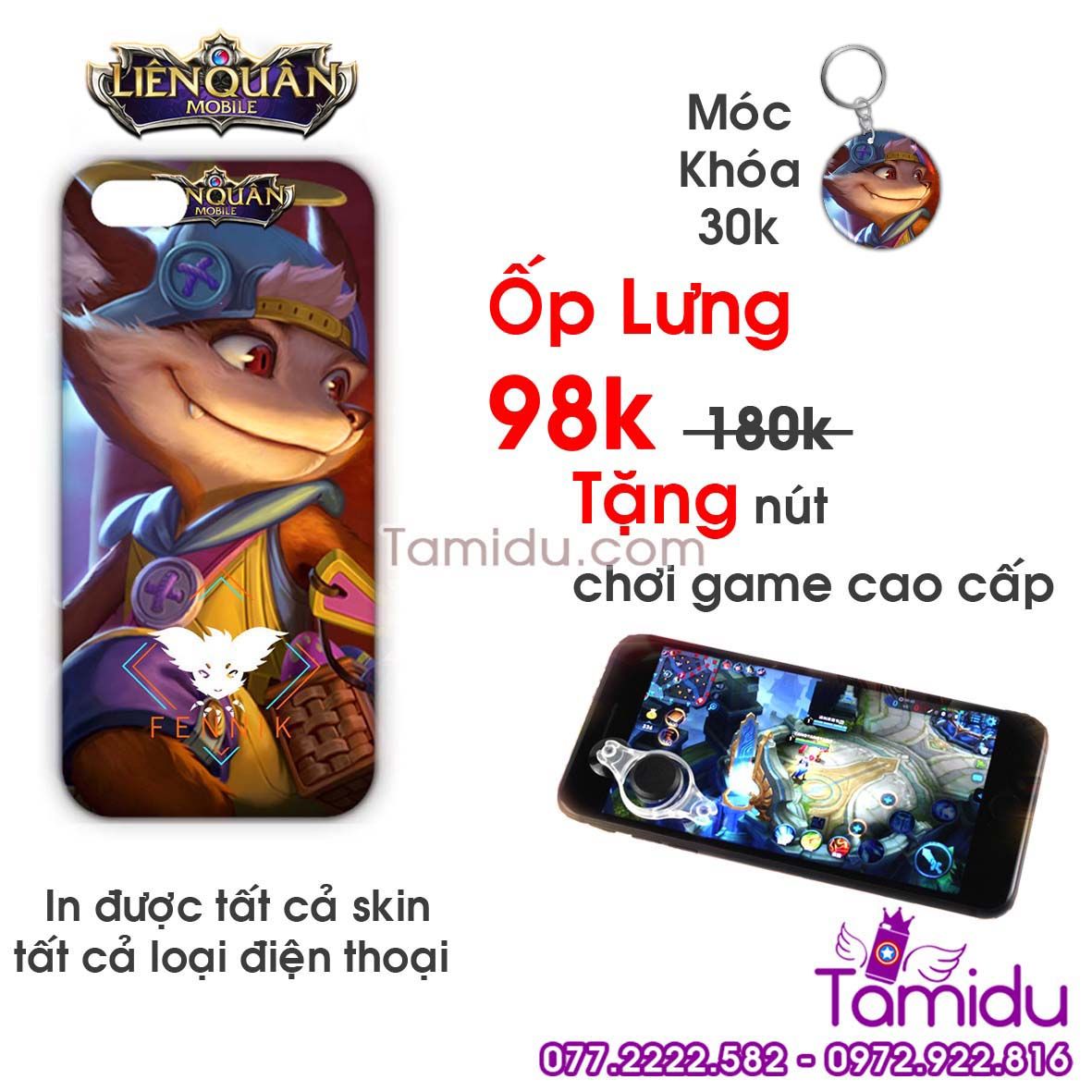 - Khi mua 1 sản phẩm Ốp Lưng Liên Quân bất kỳ bạn được tặng nút chơi game trị giá 90K